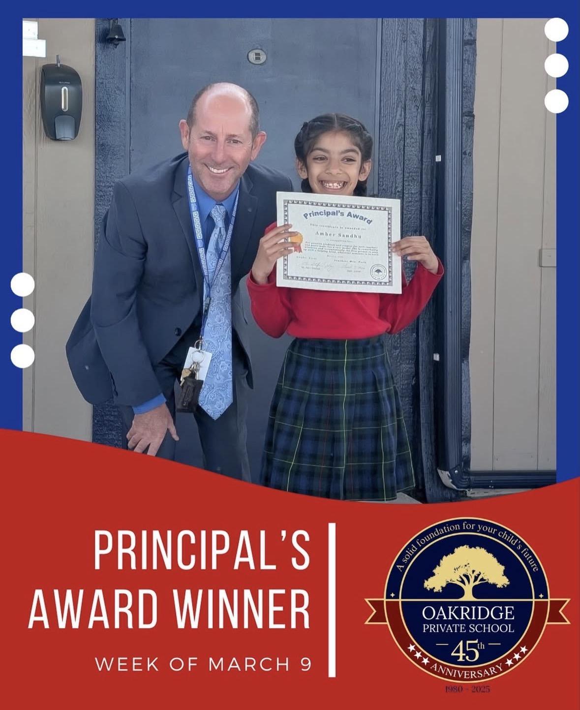 Congratulations to Principal Award Winner for March 2, 2026