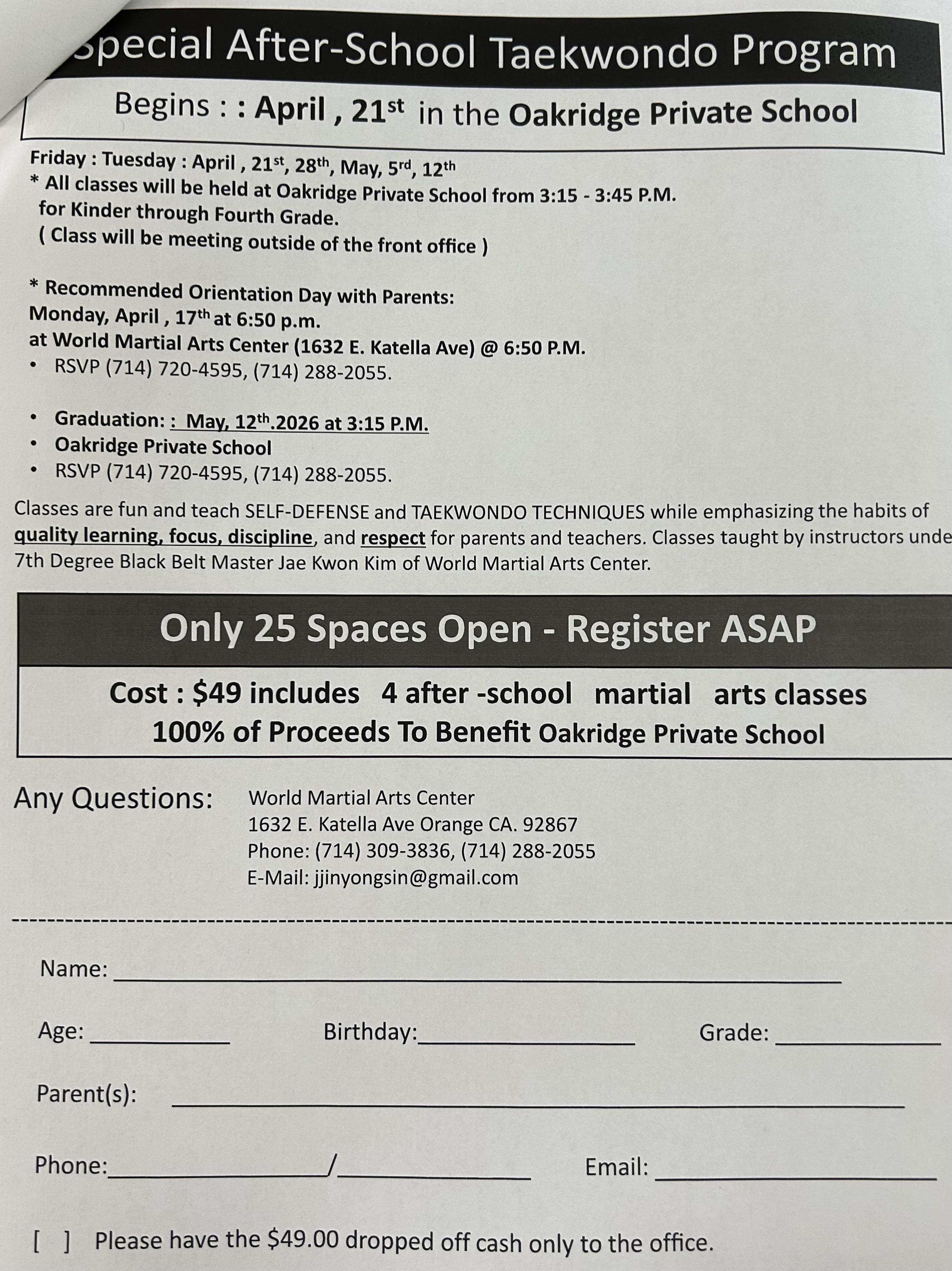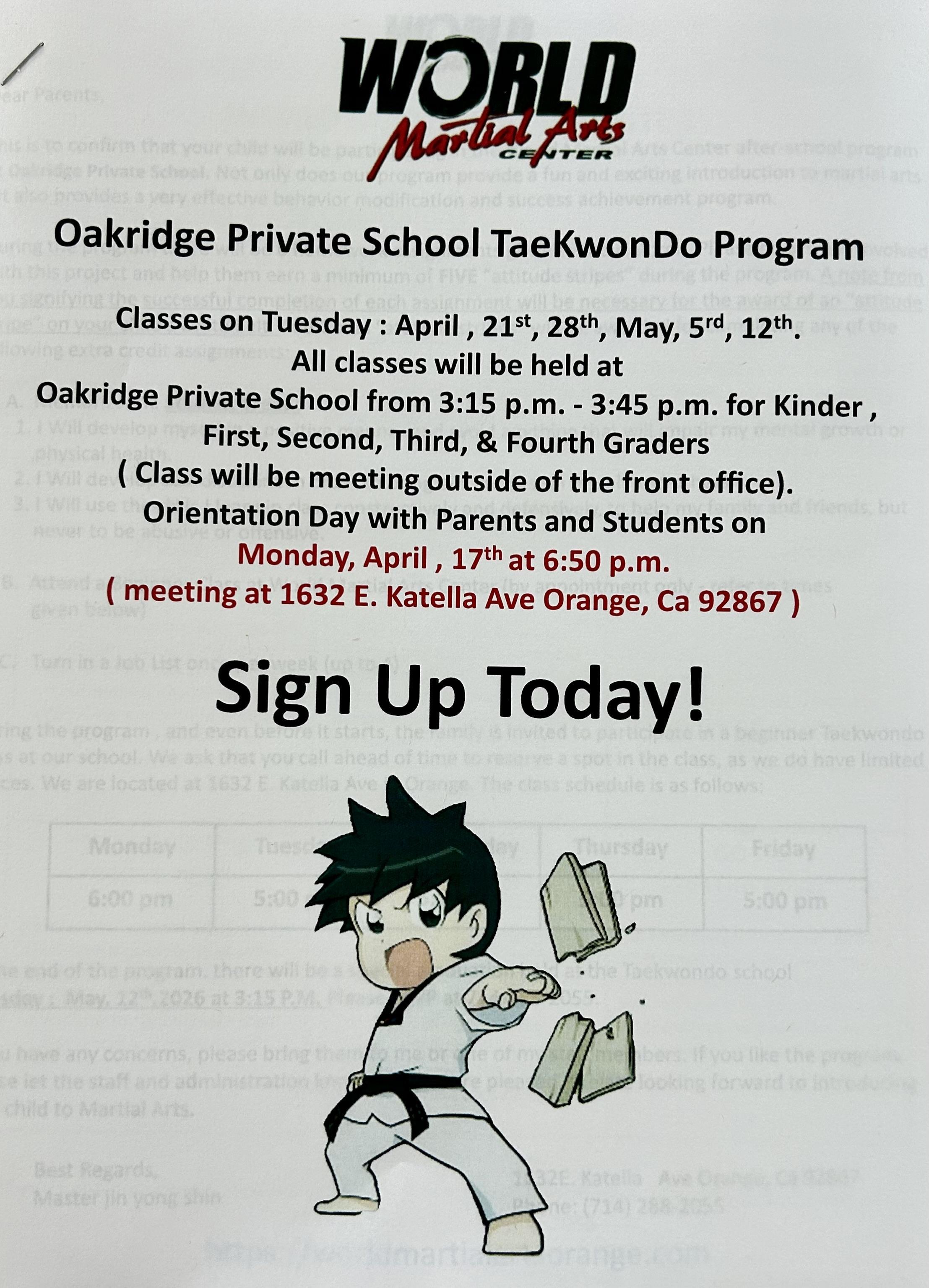 Sign up for TaeKwonDo!